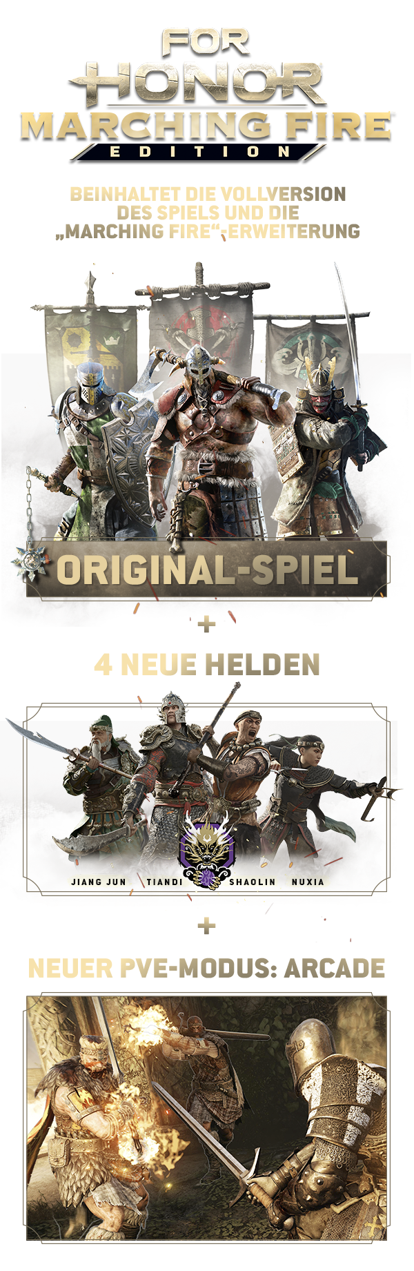 Beinhaltet das For Honor®-Basisspiel und die Erweiterung Marching Fire™.