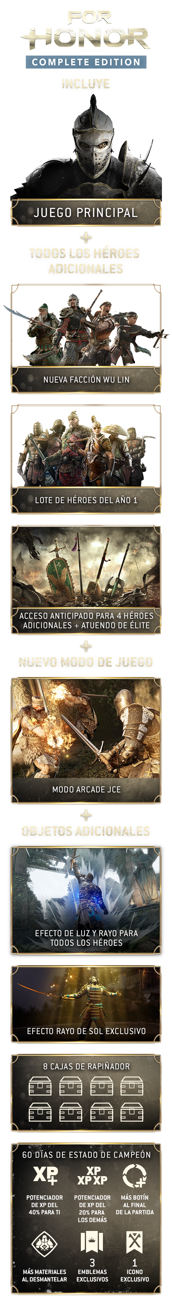 Disfruta de la experiencia definitiva de For Honor con esta Complete Edition. Incluye el juego principal, la expansión de Marching Fire, el lote de héroes del año 1 y el pase del año 3.