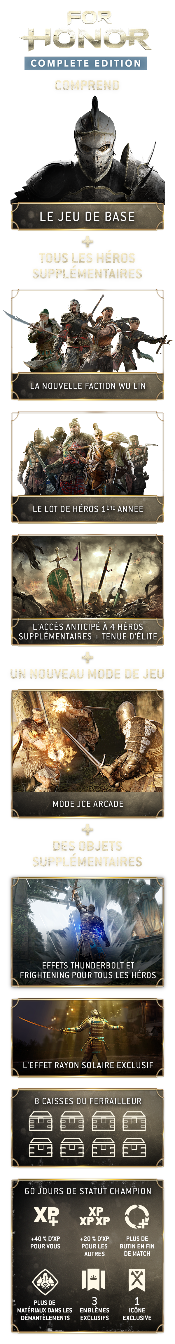 Vivez l’expérience For Honor ultime avec l’Edition Complète. Comprend le jeu de base, l’extension Marching Fire, le lot de héros 1re année et le pass 3e année.
