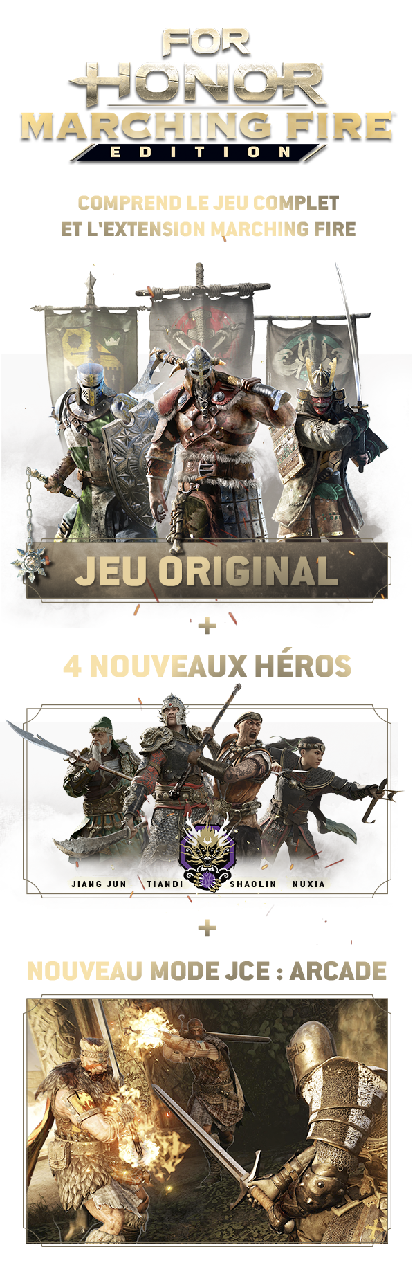 Comprend le jeu de base For Honor® et l’extension Marching Fire™.